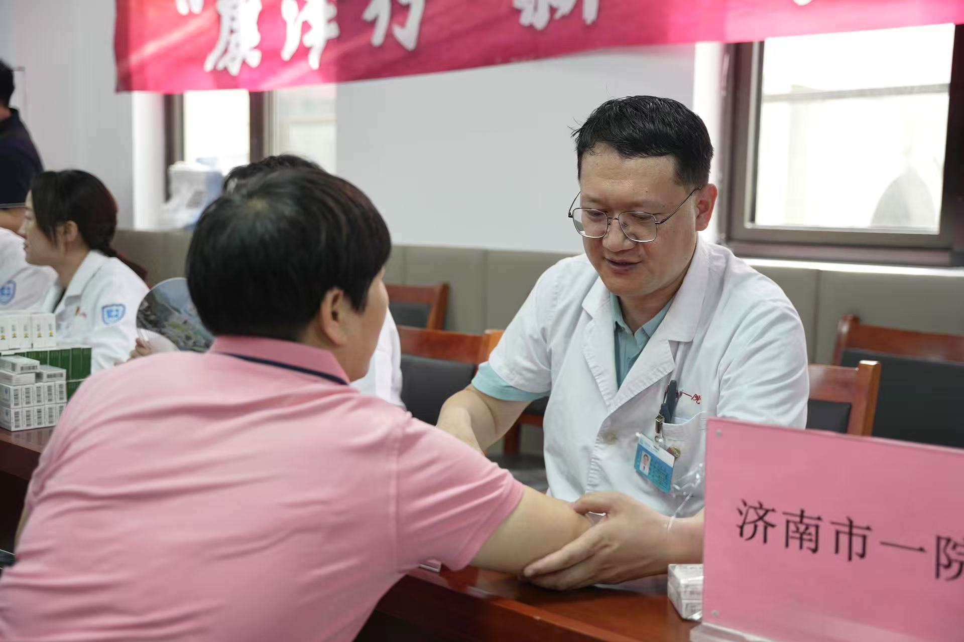 为响应国家卫生健康委老年健康宣传周号召,切实提高老年人的健康素养和健康水平,以老年人心理健康为重点,营造有利于老年人健康生活的社会环境。2025年6月25日,济南市第一人民医院联合望岳社区成功开展“康泽行·新一院”大型义诊活动,以“银龄健康,从心启航”为主题,让居民在家门口享受优质医疗资源服务。医院党委副书记、院长付庆元和副院长高爽来到义诊现场慰问了医务人员。