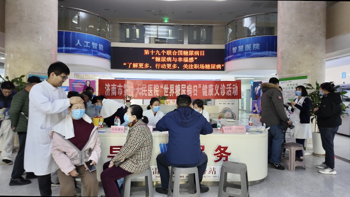 今年的11月14日是第19个“联合国糖尿病日”,主题是“糖尿病与幸福感”。宣传口号是“了解更多,行动更多,关注职场糖尿病”。据数据表明,中国20-49岁人群糖尿病患病率呈现明显上升趋势,发病年龄趋于年轻化,与不良生活方式有很大关系。为增强人们对糖尿病及其慢性并发症危害的认识,让更多患者了解疾病并接受规范化的治疗,近日,济南市第一人民医院内分泌科在门诊大厅开展“联合国糖尿病日”大型义诊活动。