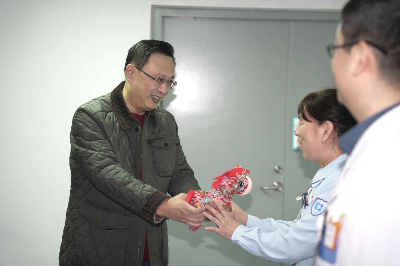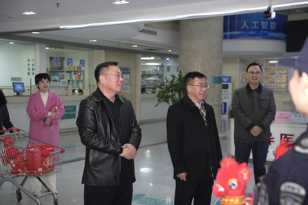 委领导指出医院的平稳运转离不开春节期间坚守岗位的医务人员,向大家的辛勤付出和无私奉献表示衷心感谢,同时要求增强安全意识,落实好各项安全生产责任,做好服务保障,切实守护好人民群众的生命安全和身体健康。