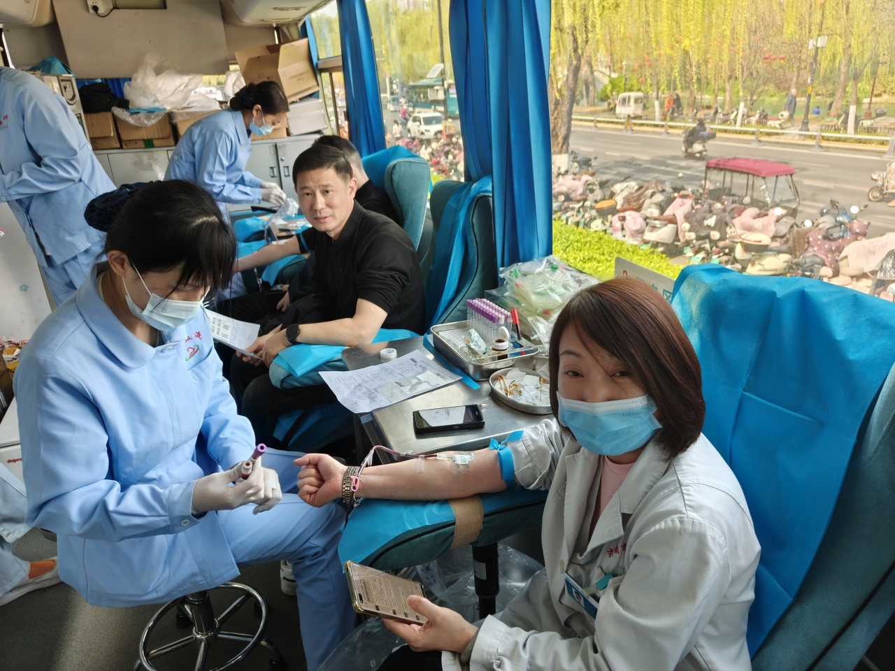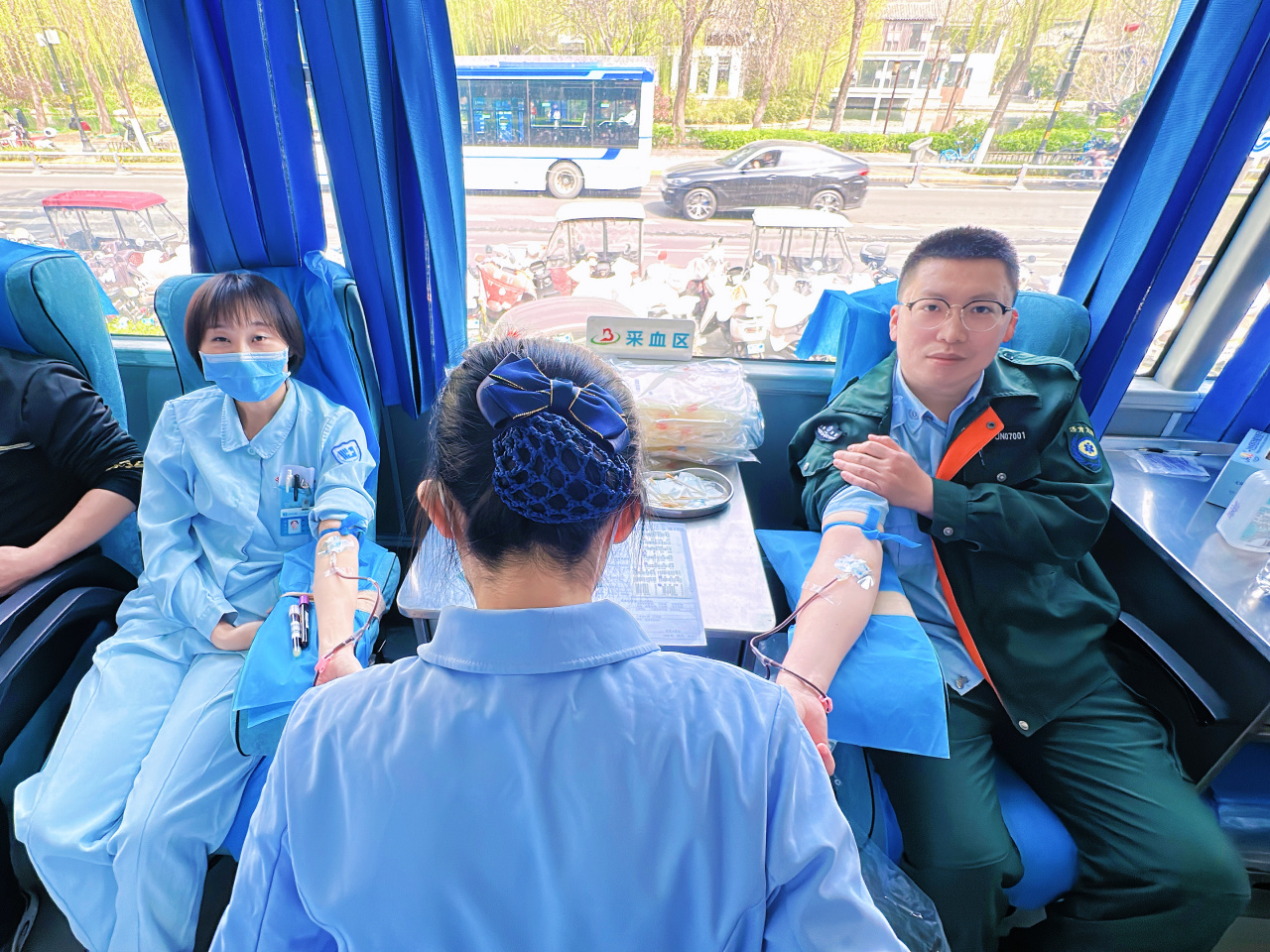 作为医务人员,他们在岗位上严谨负责,下班后更是言传身教的好榜样。他们没有停留在“我要去献血”的个人行动上,而是主动带着家人来献血,充分诠释了医者仁心向家庭美德的延伸。采血现场,夫妻两人的身影默契同框。有的刚结束病房的忙碌,顾不上休息就匆匆赶来;有的刚完成急救任务,便加入献血队伍;还有的夫妻多次参加无偿献血,坚持用双倍的爱心传递医者温度。