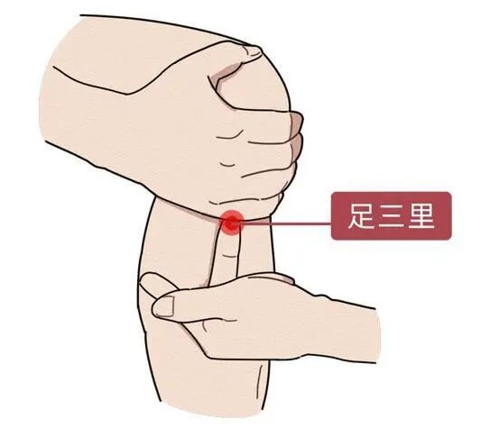 ·足三里:位于膝盖外侧下方约四指宽处。胃胀、消化不良时按压3–5分钟,有酸胀感为宜,可促进脾胃功能。