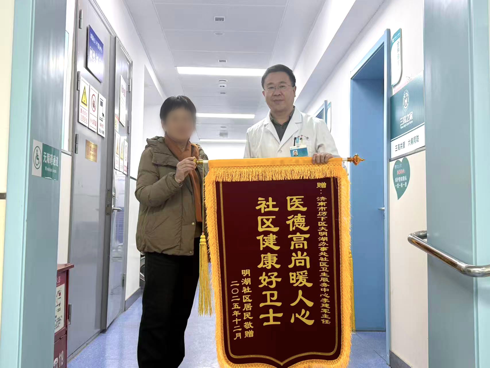 冬日虽寒,温情却暖。近日,一面印着“医德高尚暖人心,社区健康好卫士”的鲜红锦旗,被居民罗阿姨郑重地送到了济南市第一人民医院社区科李建军主任手中。这面锦旗,不仅是一份沉甸甸的感谢,更是社区居民对基层医疗服务最真挚的认可。
