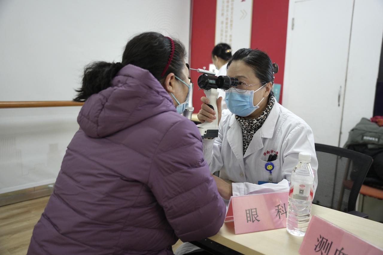 本次义诊的三大亮点,是神经内科陈欢主任特别引入了便携式骨密度仪,为中老年居民及高风险人群进行现场骨质疏松风险筛查与评估,助力骨骼健康早发现、早干预。眼科专家闫家青通过专业的裂隙灯为居民进行眼前节检查,有效筛查白内障、角膜病变等常见眼病,并配合视力检测,帮助居民及时了解视力状况。以及韩庆哲、石兴鲁、邵明龙等骨干医师组成的中医康复团队。他们带来了推拿、冲击波治疗仪等中医技术体验,并现场提供个性化的康复指导。体验了中医推拿的刘大爷笑着说:“膝盖轻松多了!医生还教了我几个在家就能做的保健动作,这个服务太贴心了!