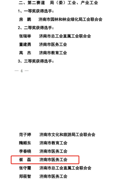 喜报!济南市医务工会、济南市第一人民医院信息部崔磊在2024年济南市职工数字素养竞赛中脱颖而出,荣获了三等奖!