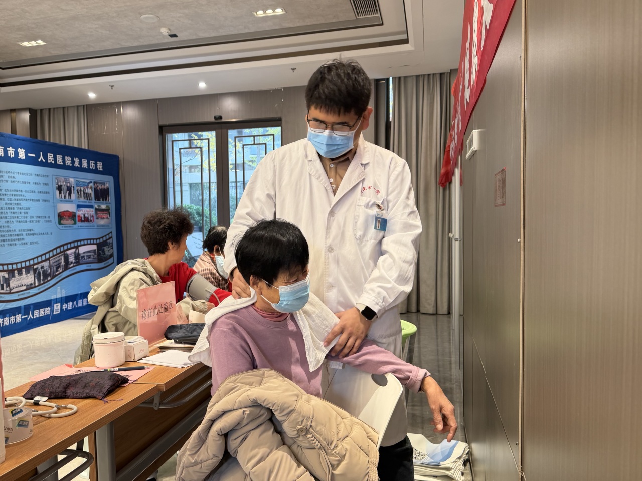 活动现场,中医康复科专家石兴鲁、韩庆哲以及中医科专家王雪松成了现场的“明星”。他们手法娴熟地为居民进行按摩、针灸、艾灸和耳穴压豆。他们一边精准施针,一边耐心地向居民解释穴位与健康的关联,让大家在享受中医治疗的同时,学到了不少养生知识。不少居民体验后,纷纷对中医的独特魅力赞不绝口。