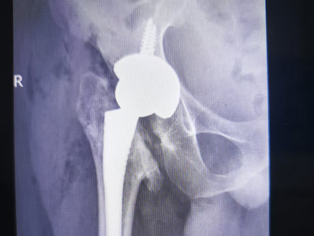 手术过程中,骨科团队全神贯注,先清除病变组织,重塑髋臼“骨窝”;接着精准植入人工关节,调整双腿长度;下移大结节,恢复肌肉发力点。术中出血仅300毫升,未输血。