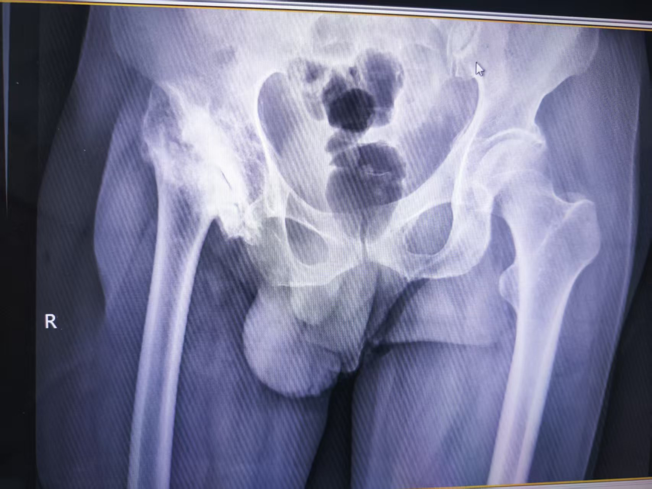 检查发现,种先生髋关节股骨头缺失,大结节严重上移,肌肉紧绷,关节结构紊乱,手术难度极大。