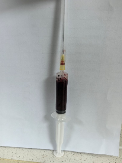 患者,男性,因左小腿持续疼痛入院。初步超声检查显示,其小腿肌间隙内存在一个长达16厘米的异常肿块(图1,图3),疑似血肿,穿刺后显示暗红色血性液体(图3)。为了明确诊断并制定最佳治疗方案,在骨科侯俊主任医师领导下,杨元勋副主任医师团队迅速行动,组织多学科会诊,邀请骨科、超声科及齐鲁医院骨科专家共同研讨。